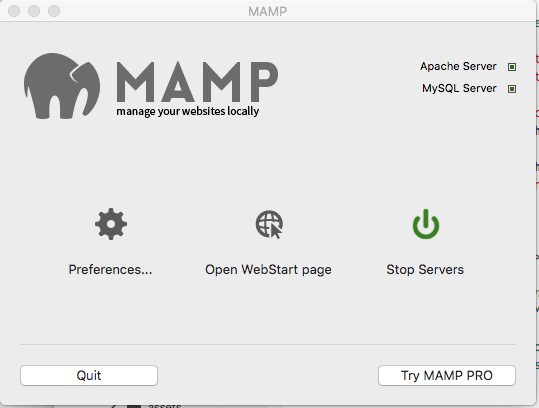 Step 1: Start MAMP which will display this window. Click on the middle button to bring up the Start Page.