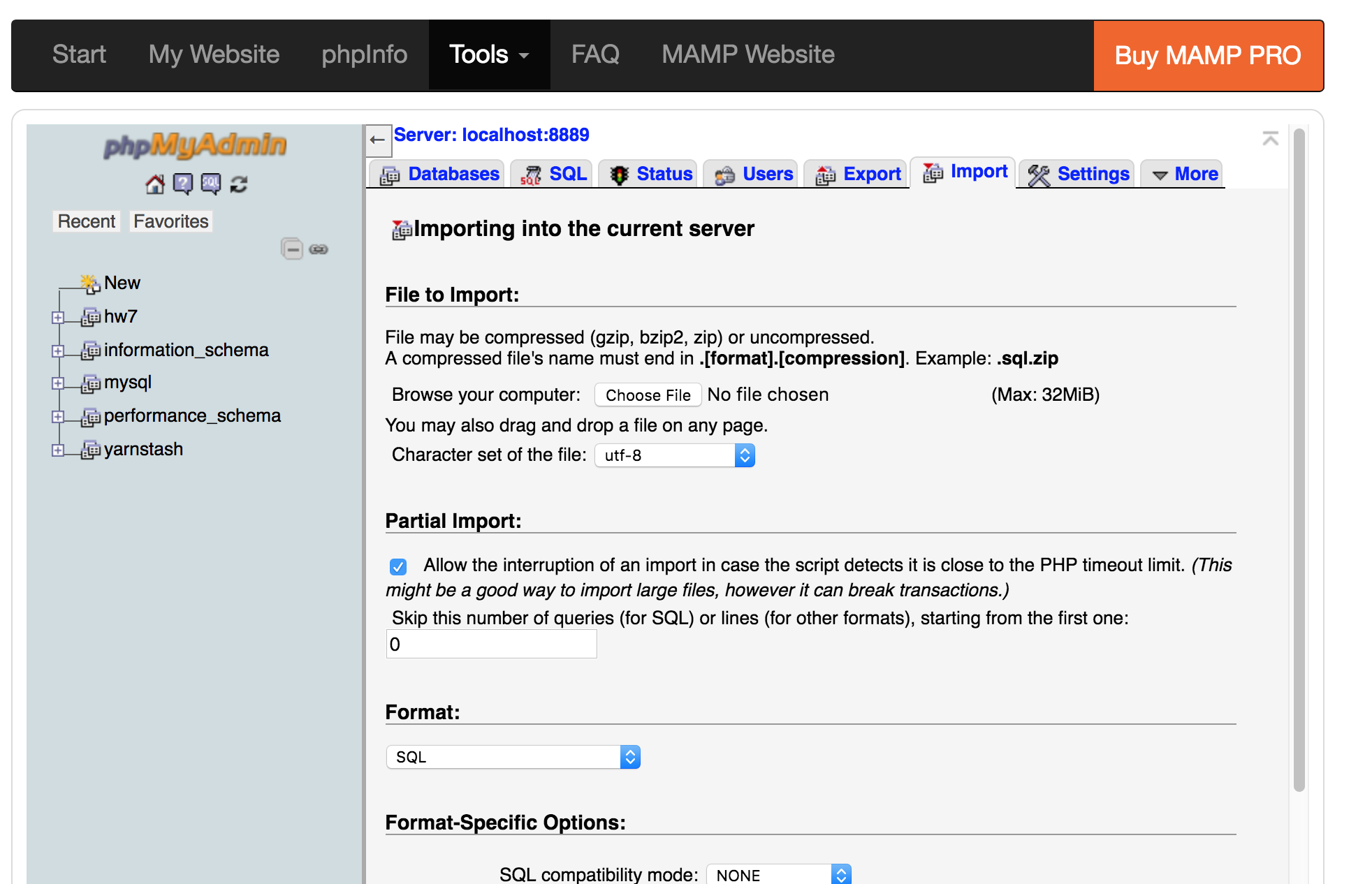 Step 8: Under Files to Import click Choose file and find the .sql file on your computer.