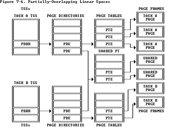 results from using one page directory for all tasks. The linear space