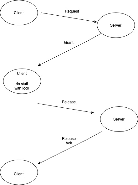 - The client can now perform whatever critical section it needs to do. If there is no need for the lock, or when the client is done with its critical section, it sends Release and sets mode to Releasing.