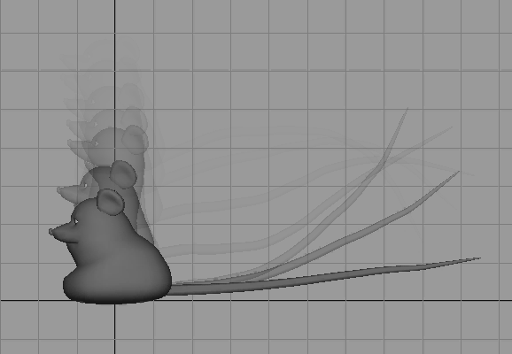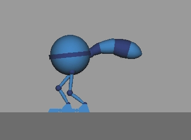 Another use for overlapping action is follow-through. Follow through is the direct result of the third and final phase of an action: termination. When a character's main body stops, their limbs, hair, and clothing continue moving. Watch the jump below. Pay attention to how the tail moves. Even after the character has recovered from the jump the tail continues to settle from the impact. Here the tail is also an example of the secondary action principle. The tail is not necessary for the animation to work, but it supports the main action.