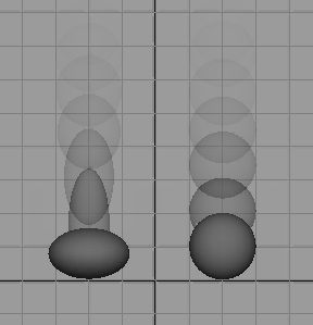 One very important rule of squash and stretch is that volume should always remain consistent. In the bouncing ball example above, when the ball squashes it scales down in addition to expanding outwards, thus retaining the same volume. Similarly, it becomes narrower when stretching.